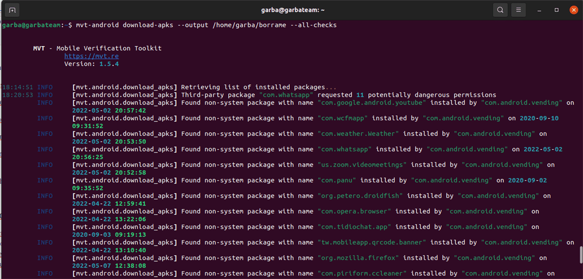 comando : mvt-android download-apks –output /home/garba/borrame –all-checks