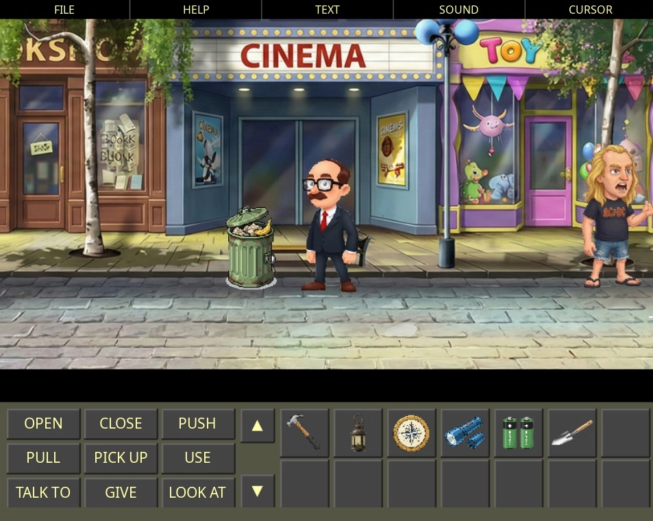 - Sistema SCUMM Integrado: Interfaz clásica de verbos (Mirar, Usar, Empujar, Hablar, etc.) y gestión de inventario totalmente funcional.